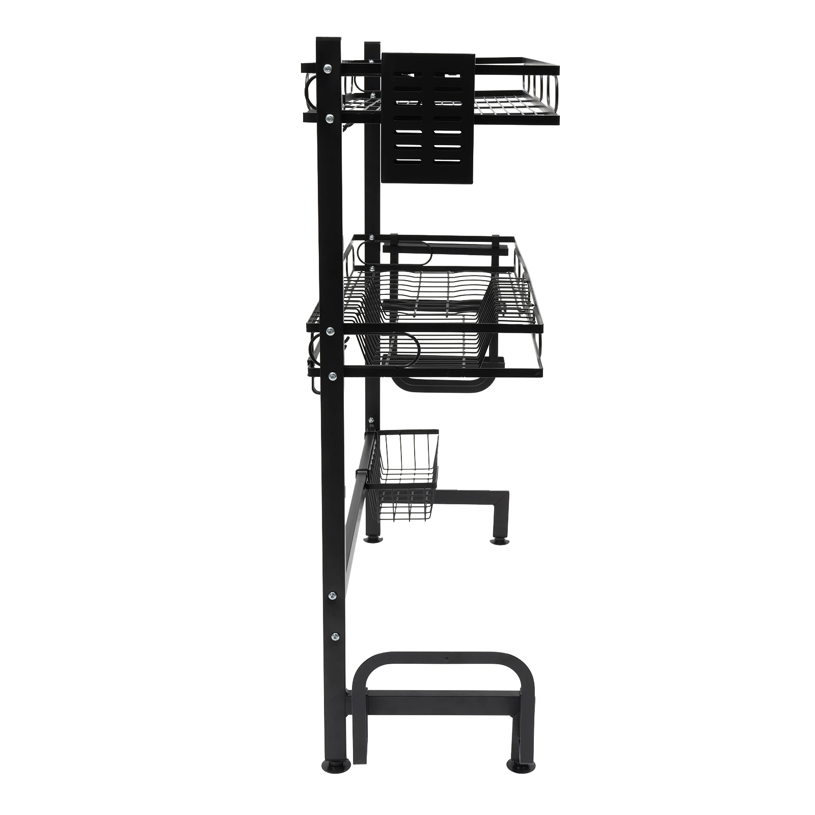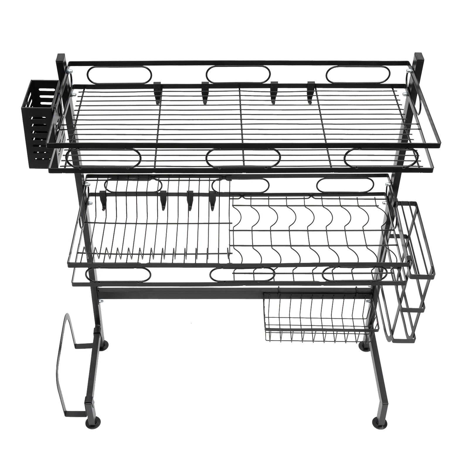 A multifunctional kitchen rack is the key to keeping the kitchen tidy. This 2-Tier Over Sink Dish Drying Rack is made of high-quality carbon steel, which is sturdy, durable, and does not shake. Various types of storage baskets and high load-bearing capacity allow you to easily store various kitchen utensils to meet your daily needs. A reasonable and exquisite exterior design is both aesthetically pleasing and practical. With it, you will have a larger kitchen space and keep the kitchen clean.